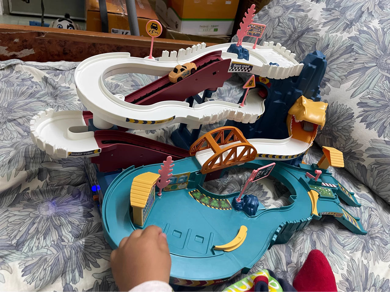 Noticed improvements in fine motor skills, such as hand-eye coordination and controlled movement while placing cars on the track.