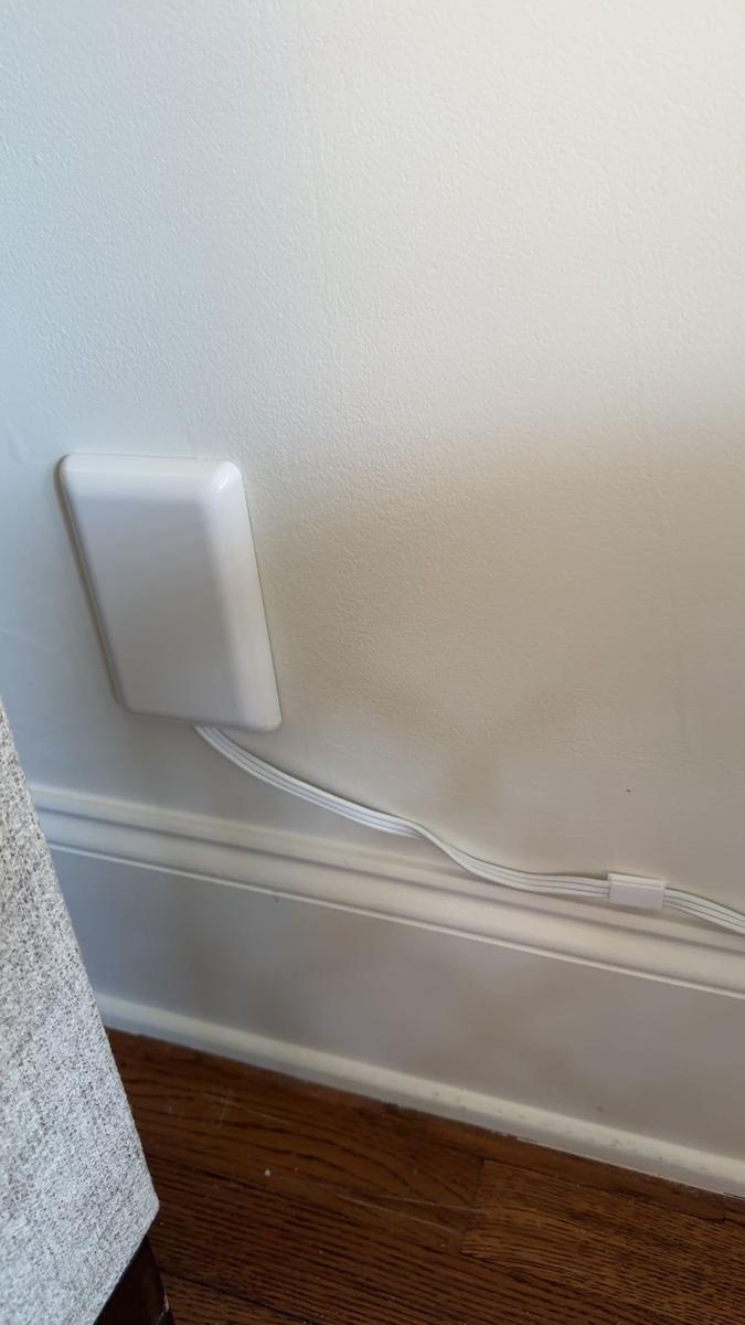 Simply plug it into the top receptacle of any standard duplex outlet—just like a normal plug. No tools or DIY required. The included adhesive strips and cord clips let you secure the flat cord neatly along the wall.